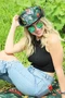 Модель. Панама с подкладом. Поля панамы фиксируются кнопками по бокам. На голове панама регулируется плетено-вязаный или полиэфирным шнуром с фиксатором стандартных цветов.