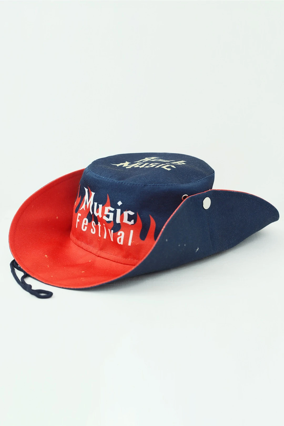 Панама Техас с полями на кнопках, с полной запечаткой "Music Festival"