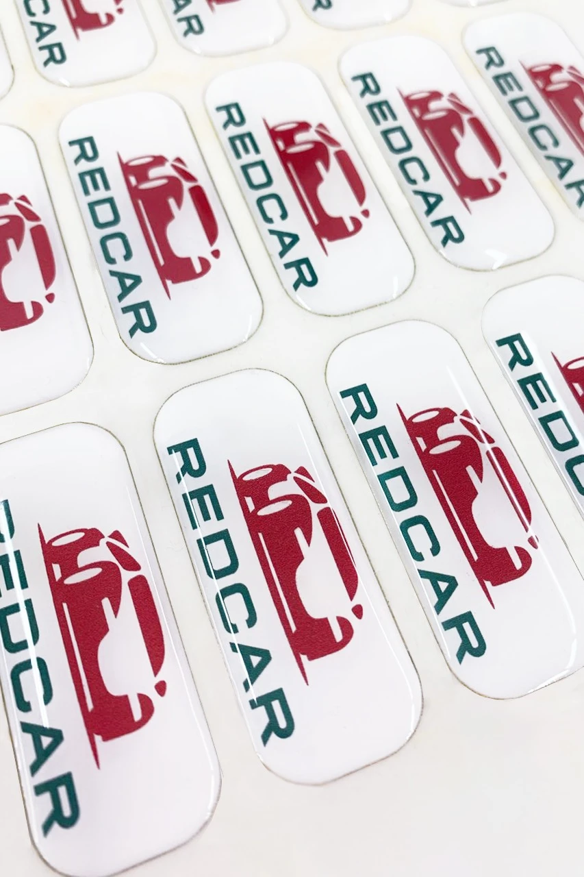 Материал: Наклейка печатается на самоклеящейся пленке, заливка смолой.
