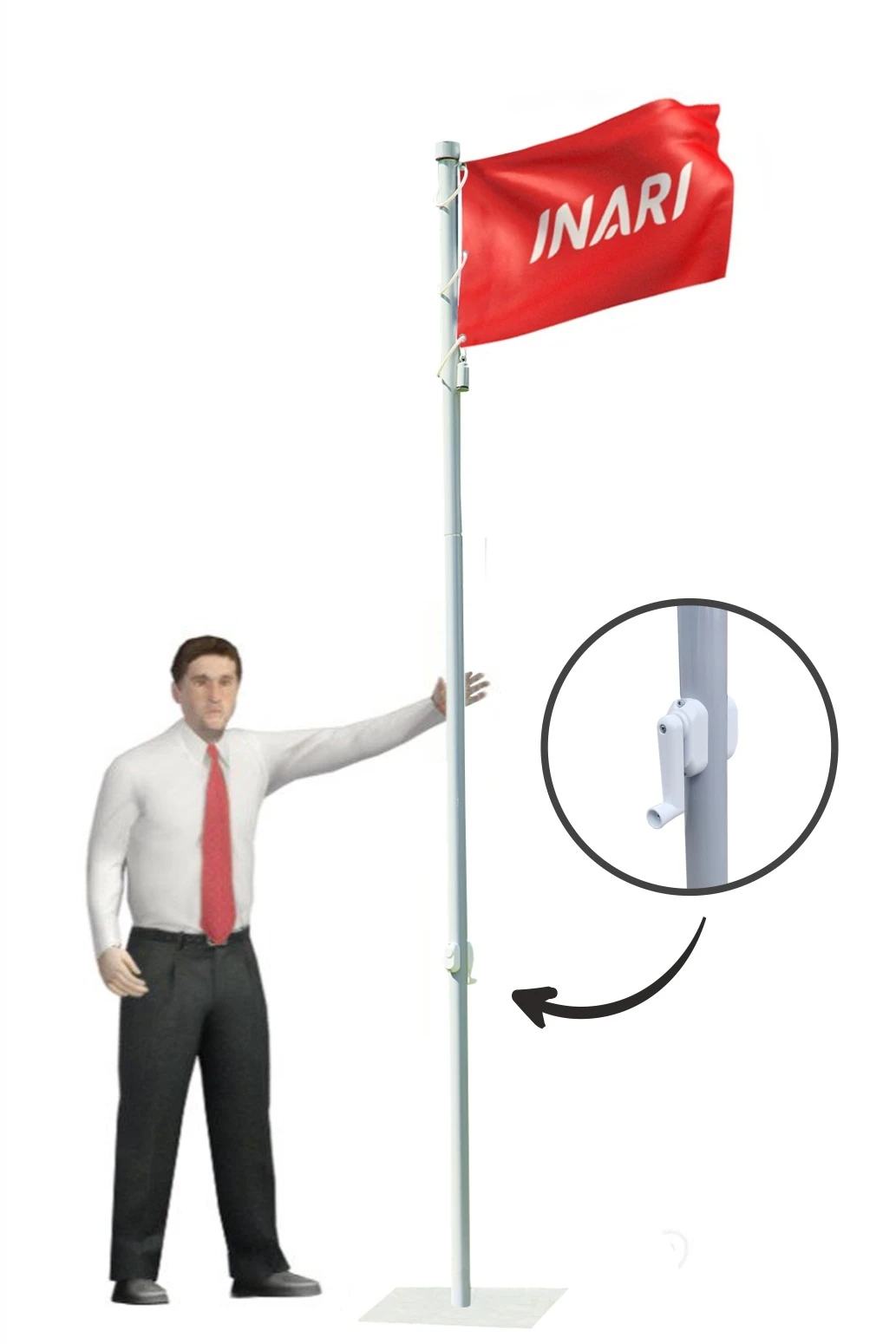Флагшток Моби Олимп обладает отличными эксплуатационными свойствами, надежностью и прочностью. Он просто и быстро собирается, обладает механизмом подъема и спуска флага с помощью лебёдки. Выбирая флагшток в компании «Инари», вы получаете качественный инструмент для того, чтобы продемонстрировать свой флаг в публичном пространстве.