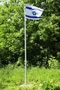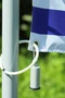 Рекомендуемый способ крепления флага: с помощью колец на люверсы, верхний угол флага фиксируют к канату с помощью карабина.