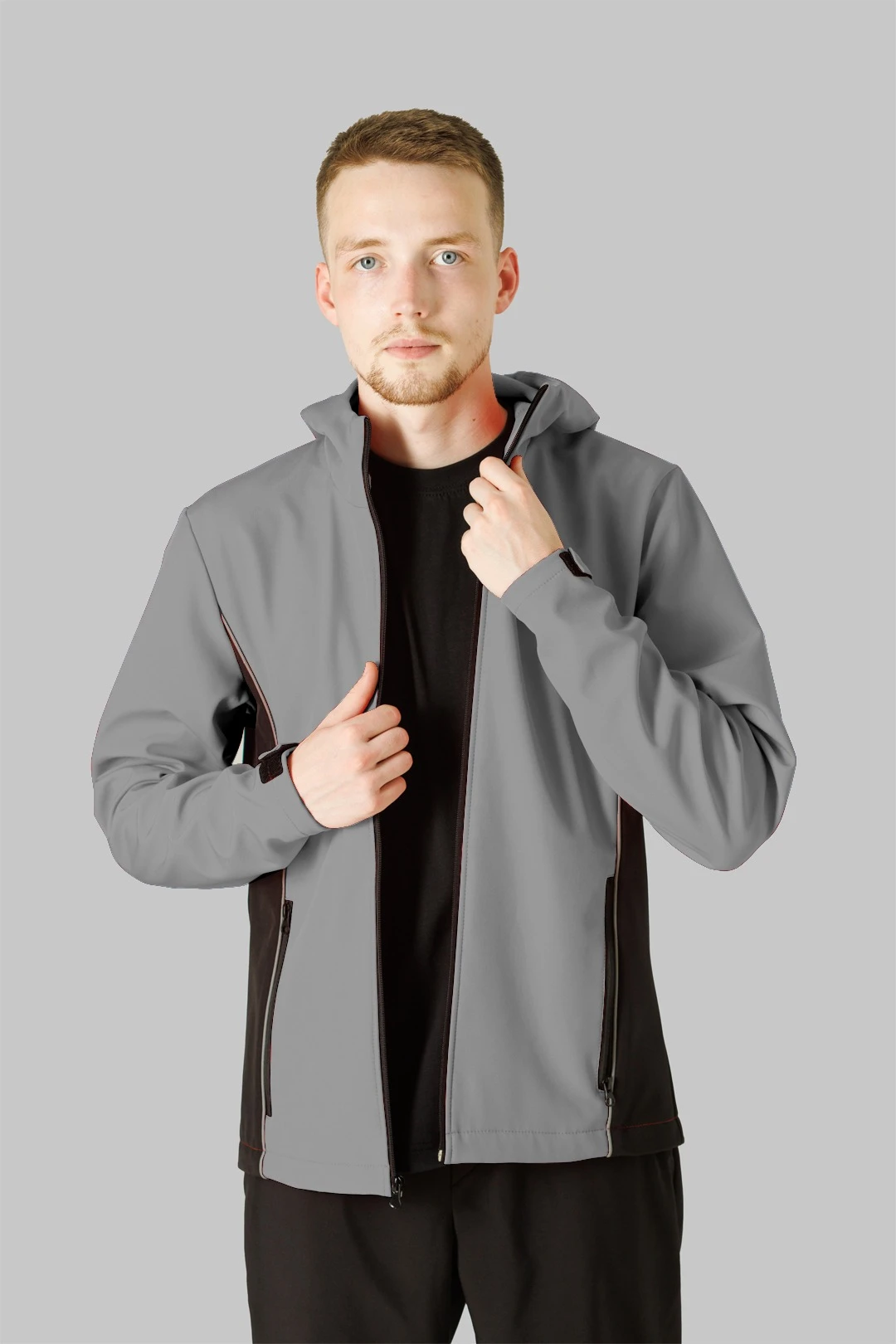Модель. Ветровка Джаспер приталенного силуэта с карманами на молнии в шве изделия. Ветровка застегивается на реверсивную молнию. Капюшон пришивной. Рукава длинные прямые с регулировкой на липе. Ветровка дополнена светоотражающим кантом в рельефе.