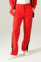 Брюки  прямые, по низу с разрезами на молнии по краю штанины. Брюки с карманами на молнии в шве изделия. Пояс на резинке, застёгивается на молнию с кнопкой. По бокам лампасы.