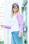Модель. Приталенный силуэт. Рукав длинный, реглан. Лонгслив имеет боковые швы без разрезов по низу изделия. Оформление горловины руликом (кантом) из основной ткани или рибаной. Форма ворота О-образная.