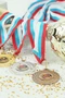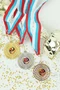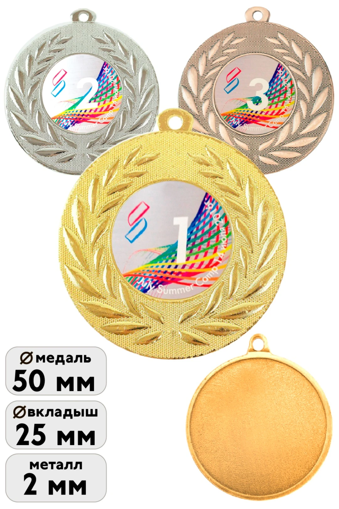 Материал: Медаль металлическая. Вкладыш из алюминиевой пластины толщиной 0,45 мм. Цвета вкладыша белый перламутр, золото перламутр, серебро перламутр, медь сатин.