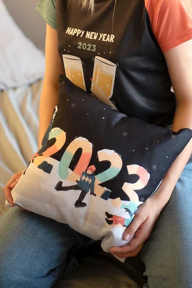 Подушка из габардина 30х30 см, с полной запечаткой "New Year 2023"
