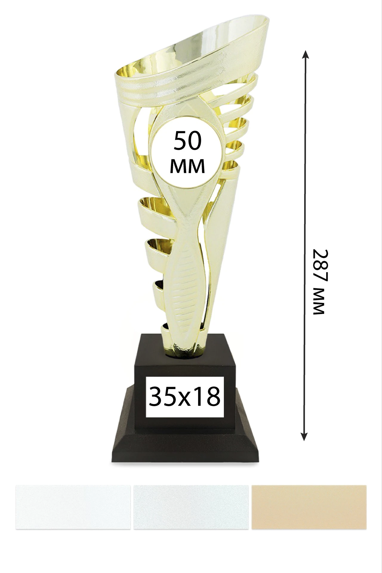 Табличка (шильд): В качестве персонализации Приза можно использовать нанесение на табличку, которая крепится к его основанию. Размер таблички (шильда) зависит от размера основания и является стандартным. Табличка и нанесение на неё уже включены в стоимость Приза, указанную на сайте.