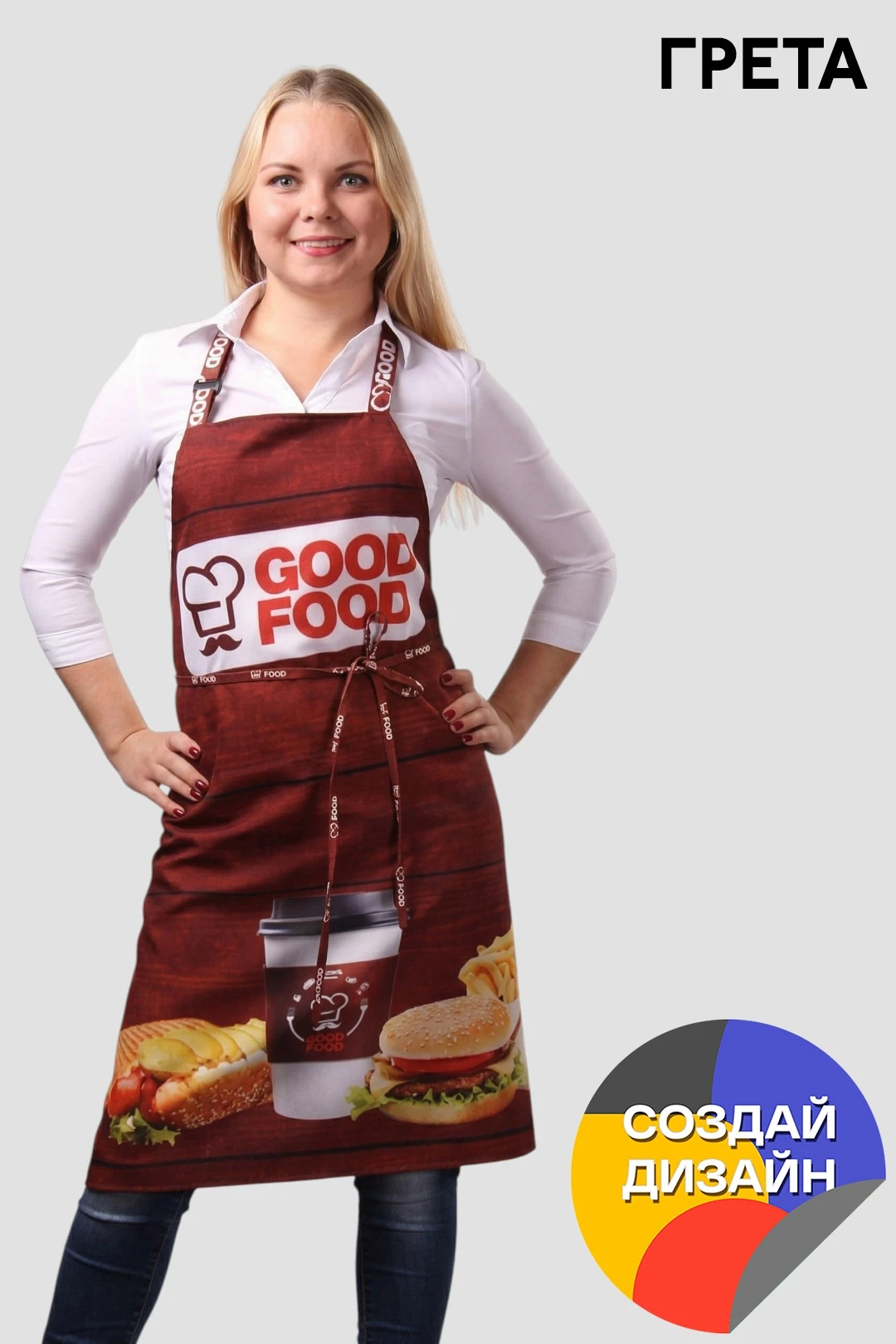 Особенности нанесения: Полноцветное нанесение осуществляется методом сублимации. Изображение размещается в соответствии с лекалом. Нанесение на фартук входит в стоимость фартука.