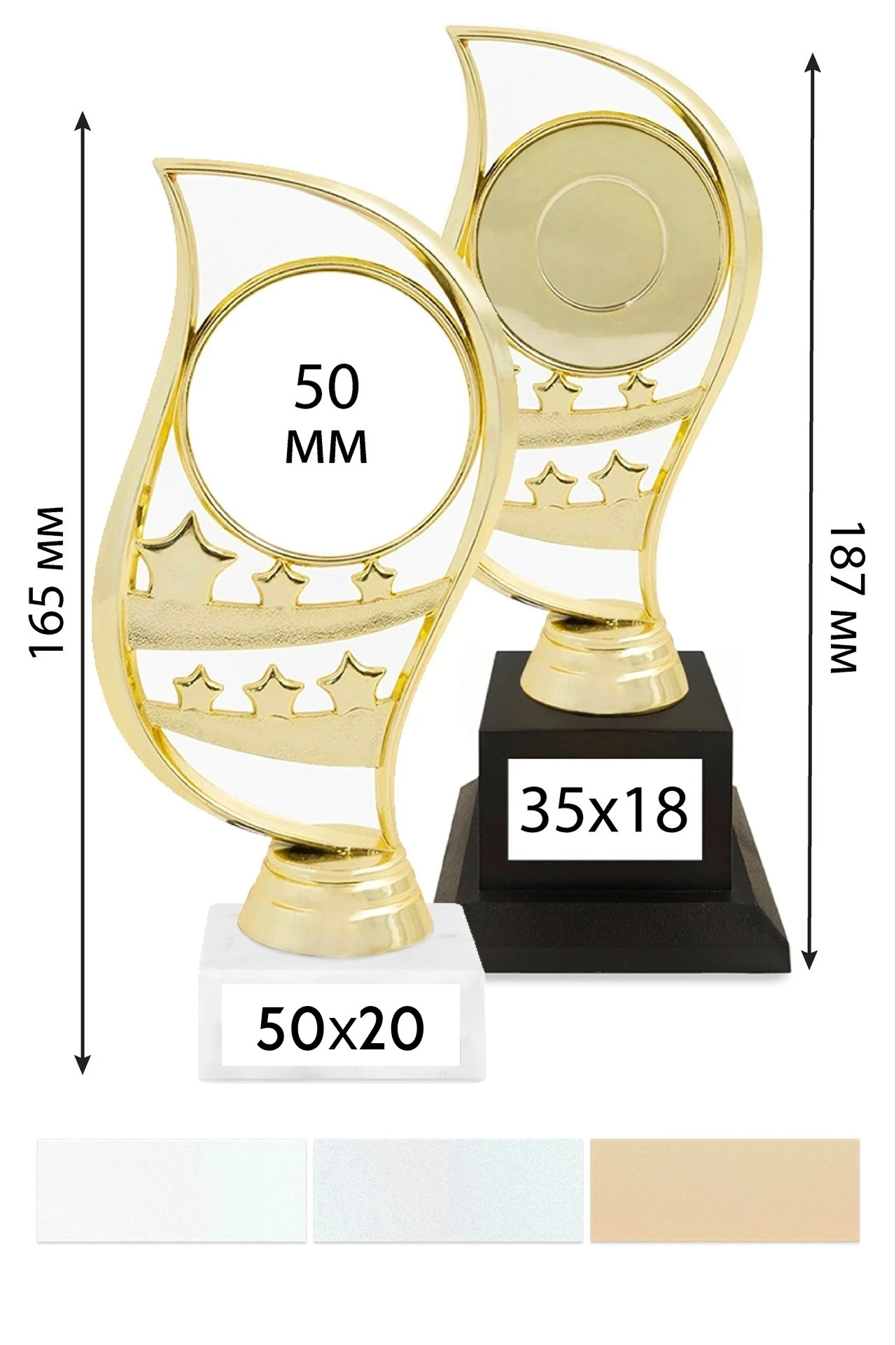 Табличка (шильд): В качестве персонализации Приза можно использовать нанесение на табличку, которая крепится к его основанию. Размер таблички (шильда) зависит от размера основания и является стандартным. Табличка и нанесение на неё уже включены в стоимость Приза, указанную на сайте.