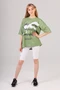 Модель. Футболка оверсайз. Обработка горловины руликом из основной ткани. Низ рукава манжеты с подворотом на лицевую сторону. Низ изделия подгибается внутрь. Форма ворота О-образная