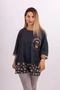 Модель. Футболка оверсайз. Обработка горловины руликом из основной ткани. Низ рукава манжеты с подворотом на лицевую сторону. Низ изделия подгибается внутрь. Форма ворота О-образная