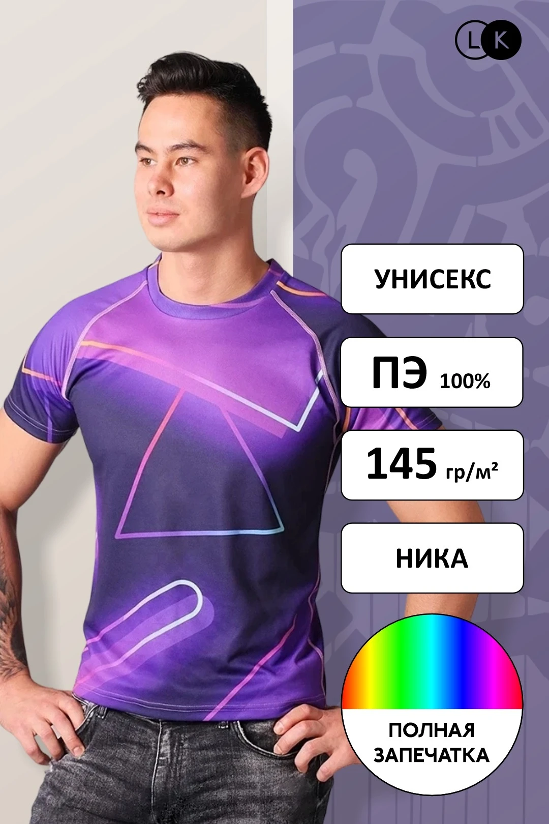 Сублимация. Полноцветная печать осуществляется на всей поверхности футболки в процессе производства. Изображение располагается в соответствии с лекалом. Нанесение входит в стоимость футболки.