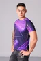 Модель. Футболка прилегающего силуэта с коротким рукавом. Форма ворота О-образная, обработка рибаной сублимационной. Рукав реглан, обработаны прошивкой швов на флетлоке.