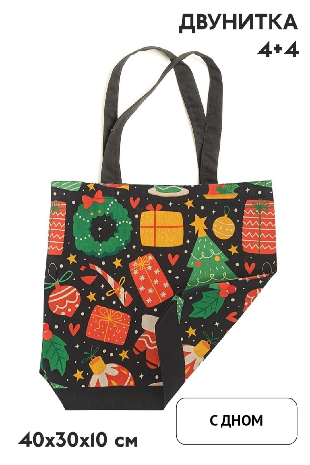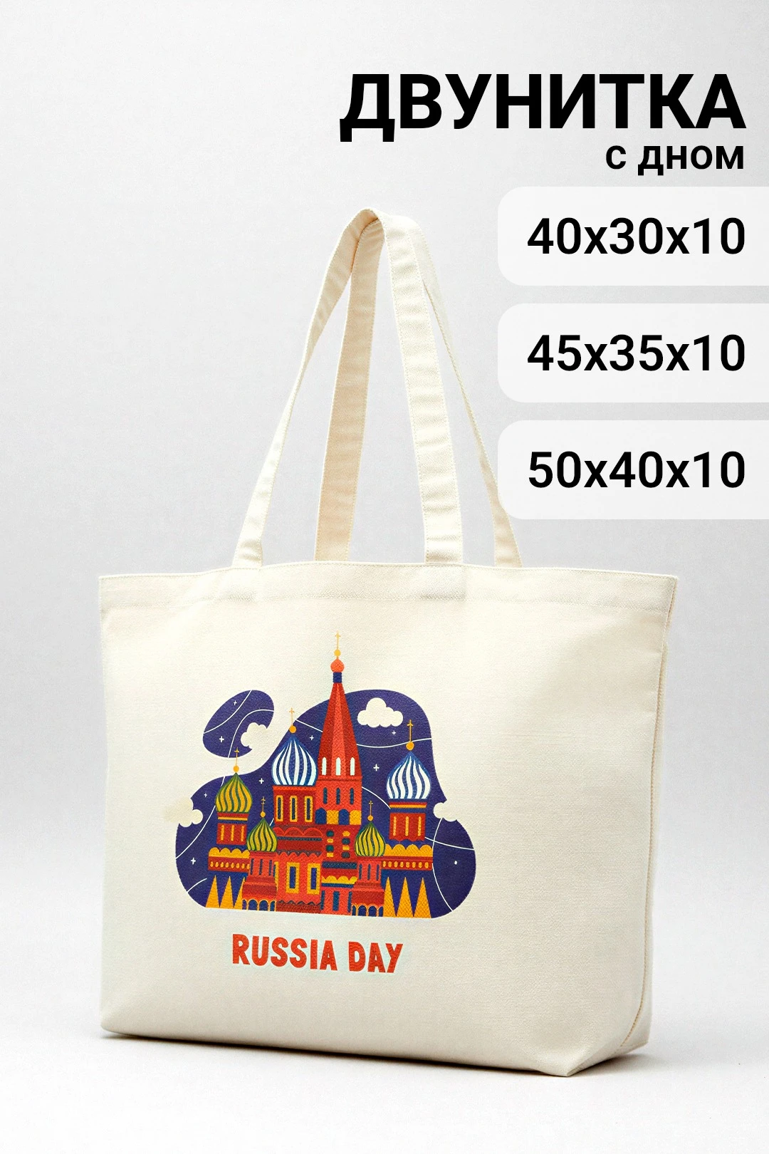 Прямая печать. Полноцветная печать осуществляется на хб материале с двух сторон и на дне сумки, ручки запечатываются фоновой заливкой без элементов дизайна. Изображение располагается в соответствии с лекалом. Нанесение входит в стоимость сумки.