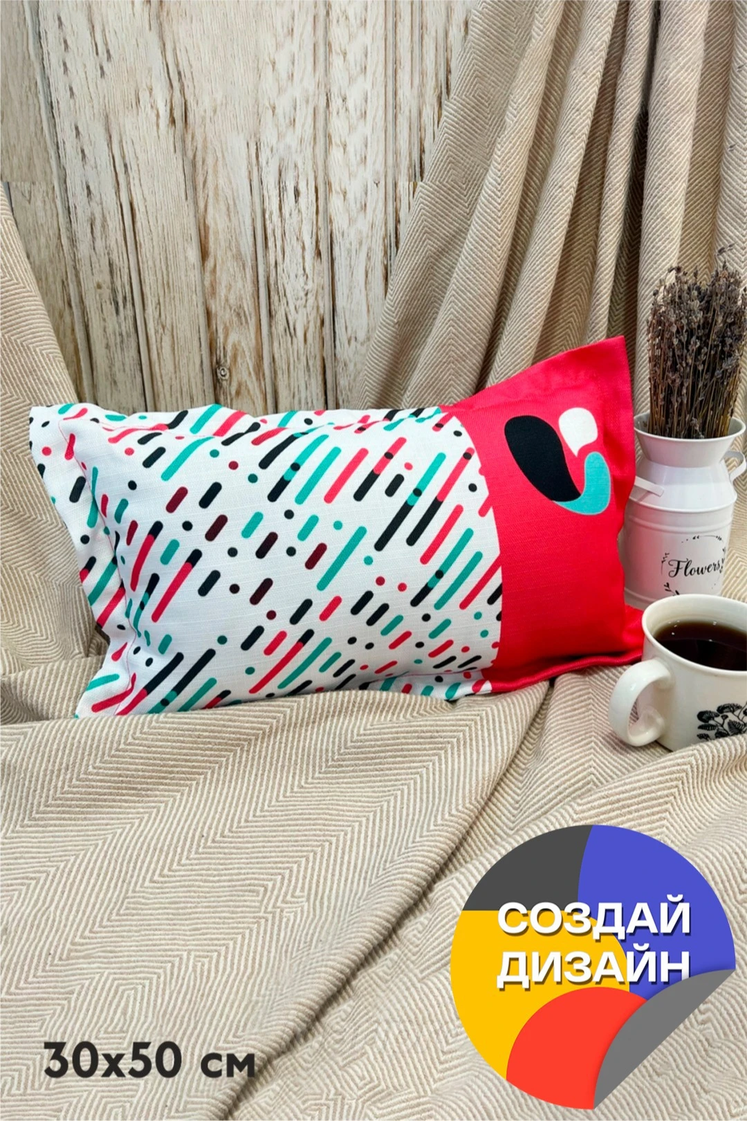 Размер: 30х50 см, бордюр 3 см, размер подушки с бордюром 36х56 см.