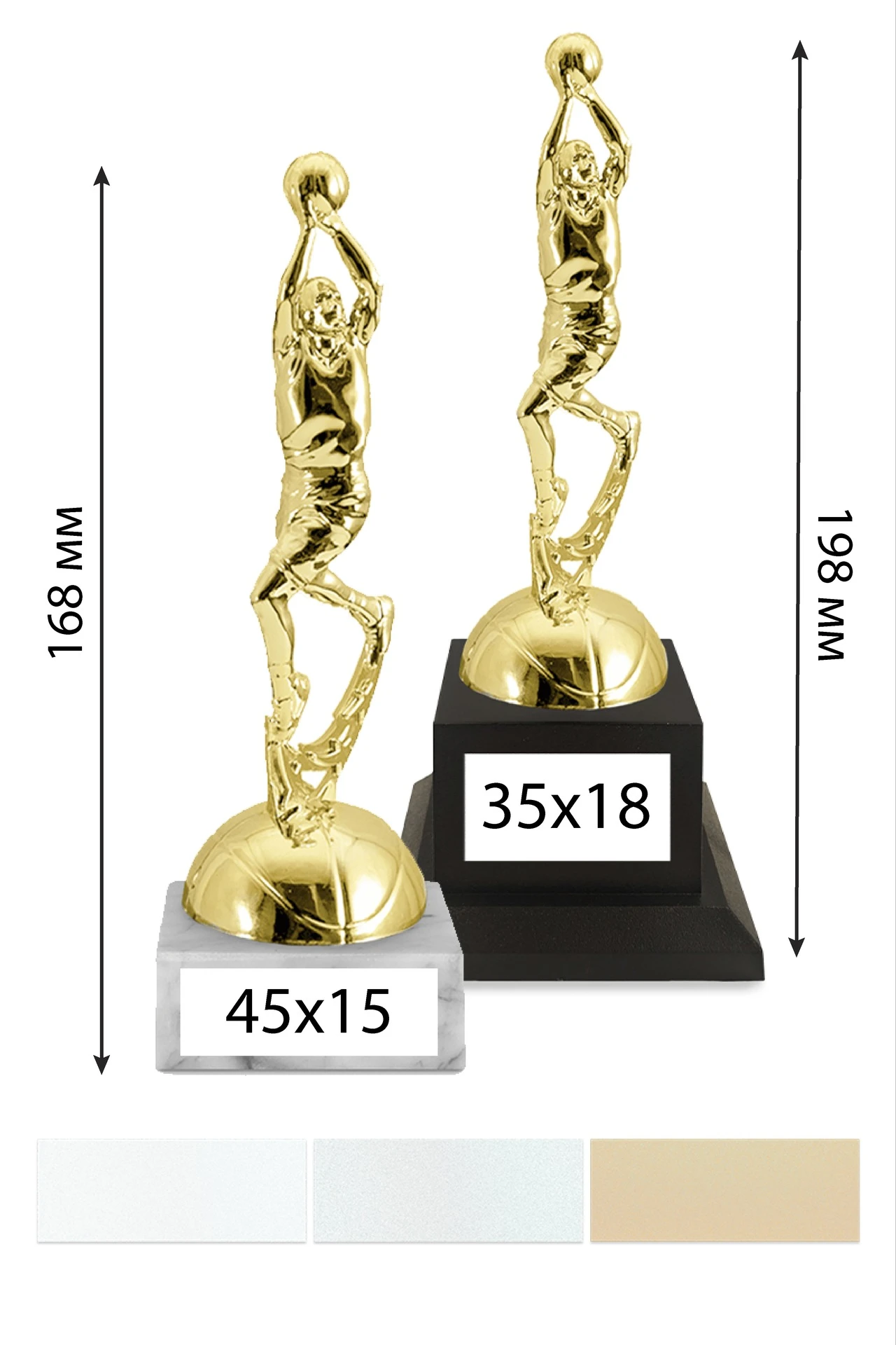 Описание: Товар представляет собой фигуру, установленную на основание. Макет наносится на табличку, закрепленную на основание фигуры. Нанесение на табличку стандартного размера уже входит в стоимость, указанную на сайте.