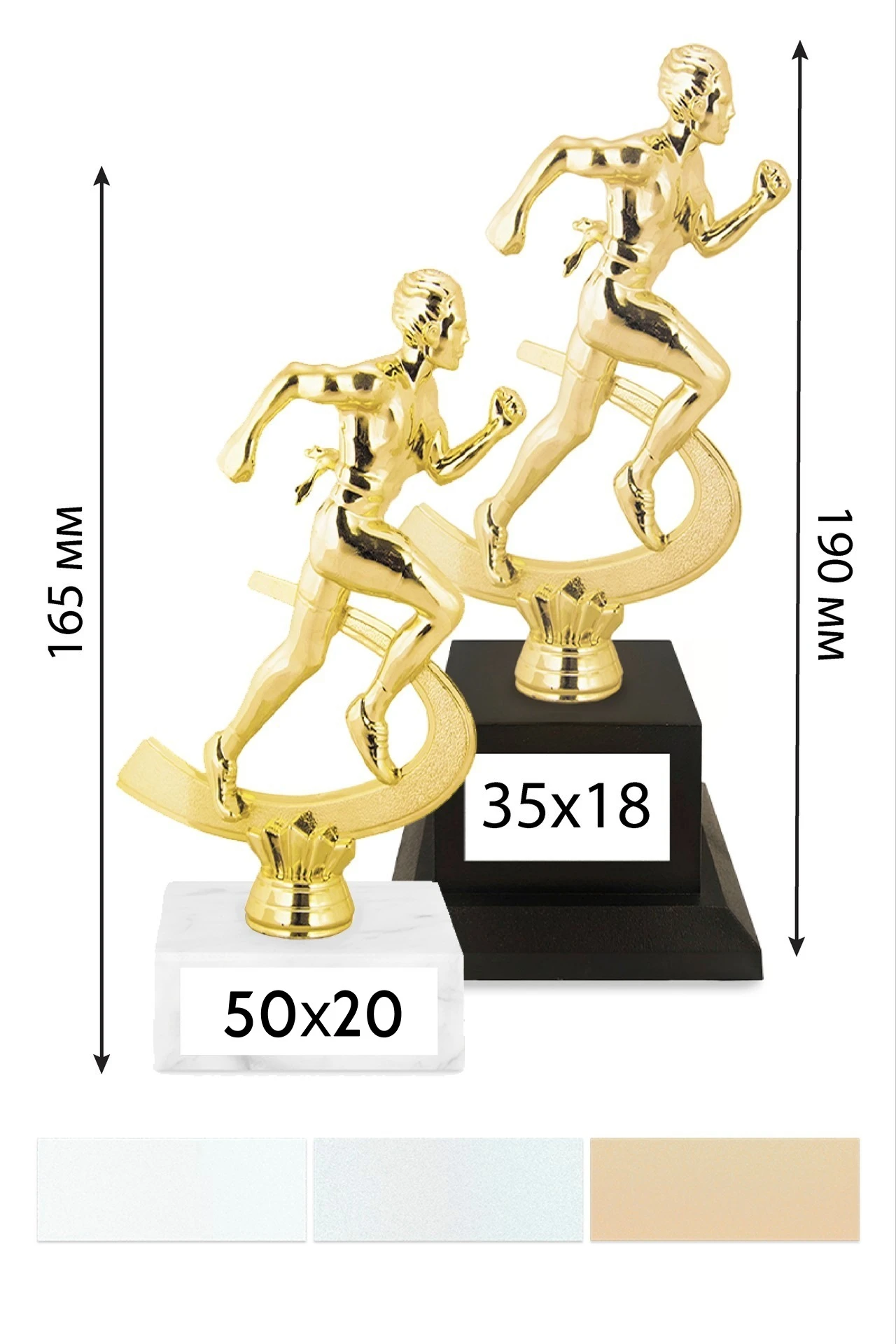 Описание: Товар представляет собой фигуру, установленную на основание. Макет наносится на табличку, закрепленную на основание фигуры. Нанесение на табличку стандартного размера уже входит в стоимость, указанную на сайте.