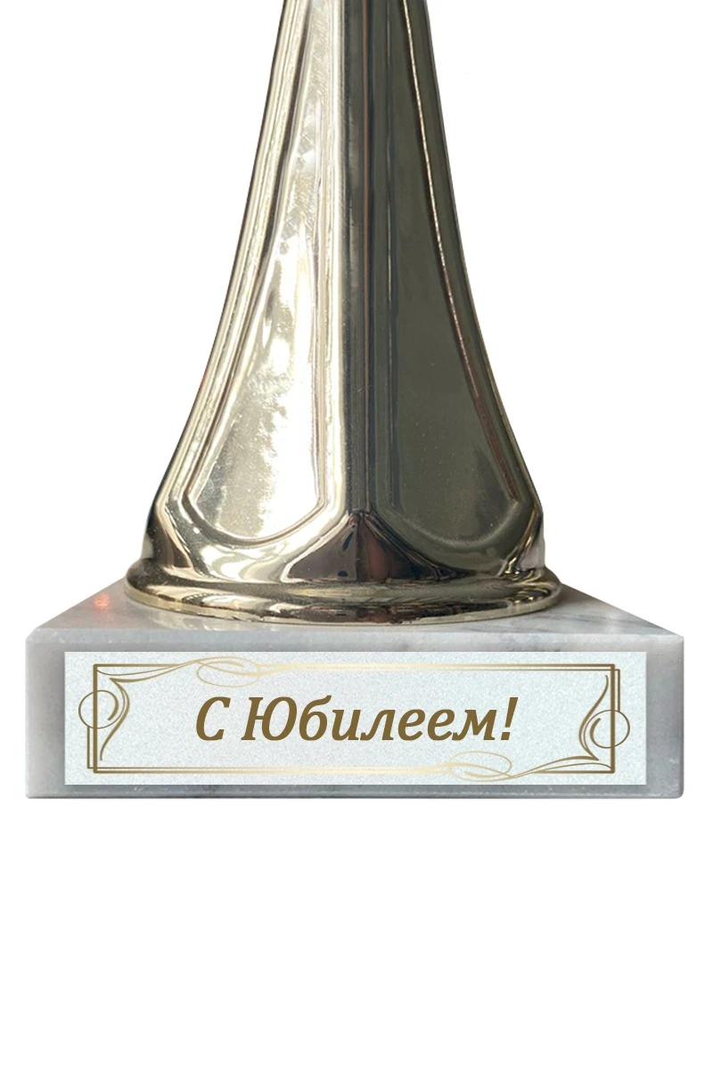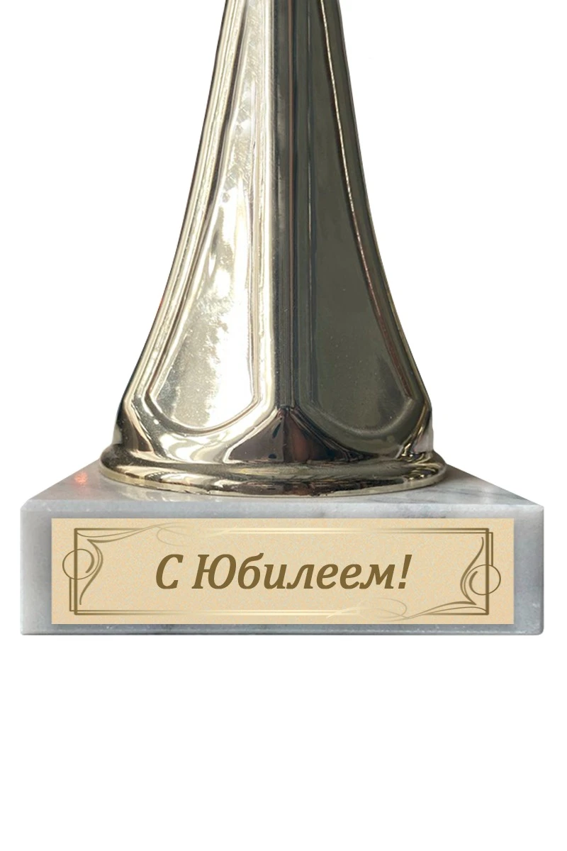 Шильд - информационная табличка, на которой размещены надписи и обозначения. Она закрепляется к основанию наградного кубка или статуэтки. Шильд прямоугольной формы с креплением на двусторонний скотч. Двусторонний скотч входит в стоимость товара. Размер шильда зависит от размера основания и является стандартным.