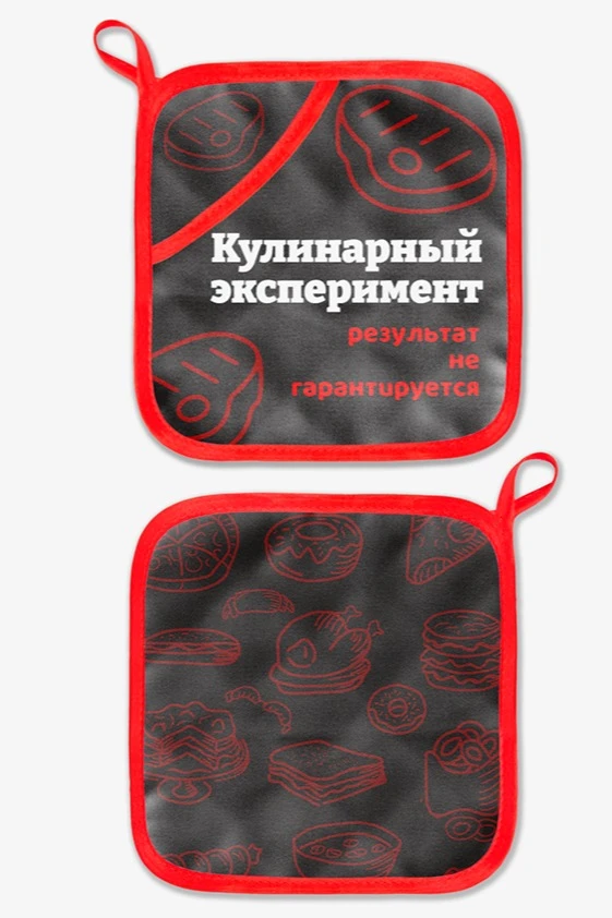 Особенности нанесения: Полноцветное нанесение осуществляется методом прямой печати. Изображение размещается в соответствии с лекалом. Нанесение на прихватку входит в стоимость прихватки.