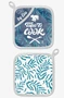 Обработка: Косая бейка по периметру. Для удобства эксплуатации прихватка имеет петлю из обтачки.
