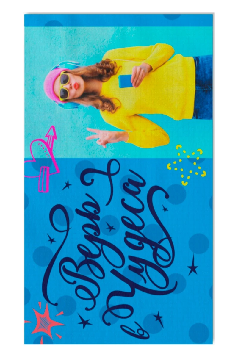 Особенности нанесения: Полноцветное нанесение осуществляется методом прямой печати на поверхность полотенца. Изображение размещается в соответствии с лекалом. Печать с одной стороны.