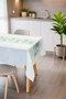 Обработка. Скатерть обрезается термоножом, подгибается швом по периметру, либо обработка края подгибкой по периметру и обработка углов конвертом.