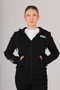 Толстовка. Балахон прямого силуэта на молнии. Манжеты и низ толстовки выполнены из ткани кашкорсе стандартных цветов. Имеет два раздельных кармана по типу кенгуру. Капюшон пришивной двухслойный, внутренний слой из однотонной кулирной глади с лайкрой стандартных цветов на выбор. У края капюшона продет плоский шнур стандартных цветов