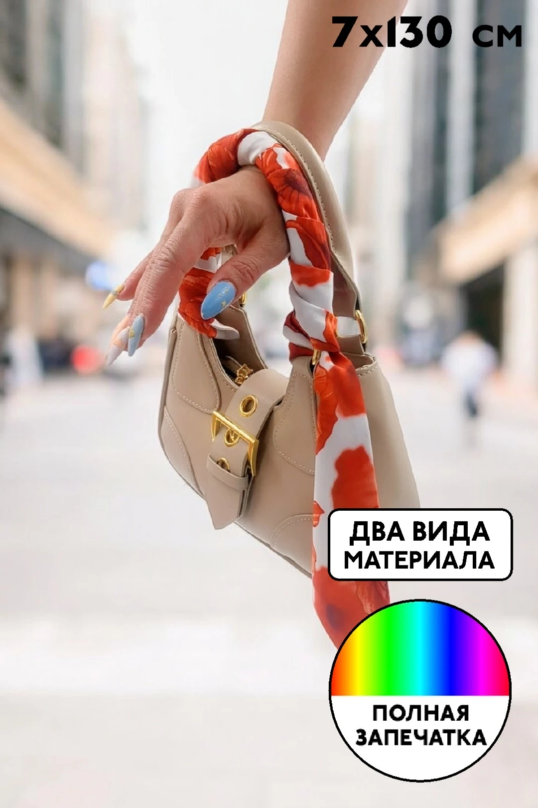 Шарф-платок Твилли двухслойный 7х130 см, с полной запечаткой