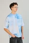 Модель. Футболка оверсайз. Обработка горловины руликом из основной ткани. Низ рукава манжеты с подворотом на лицевую сторону. Низ изделия подгибается внутрь. Форма ворота О-образная