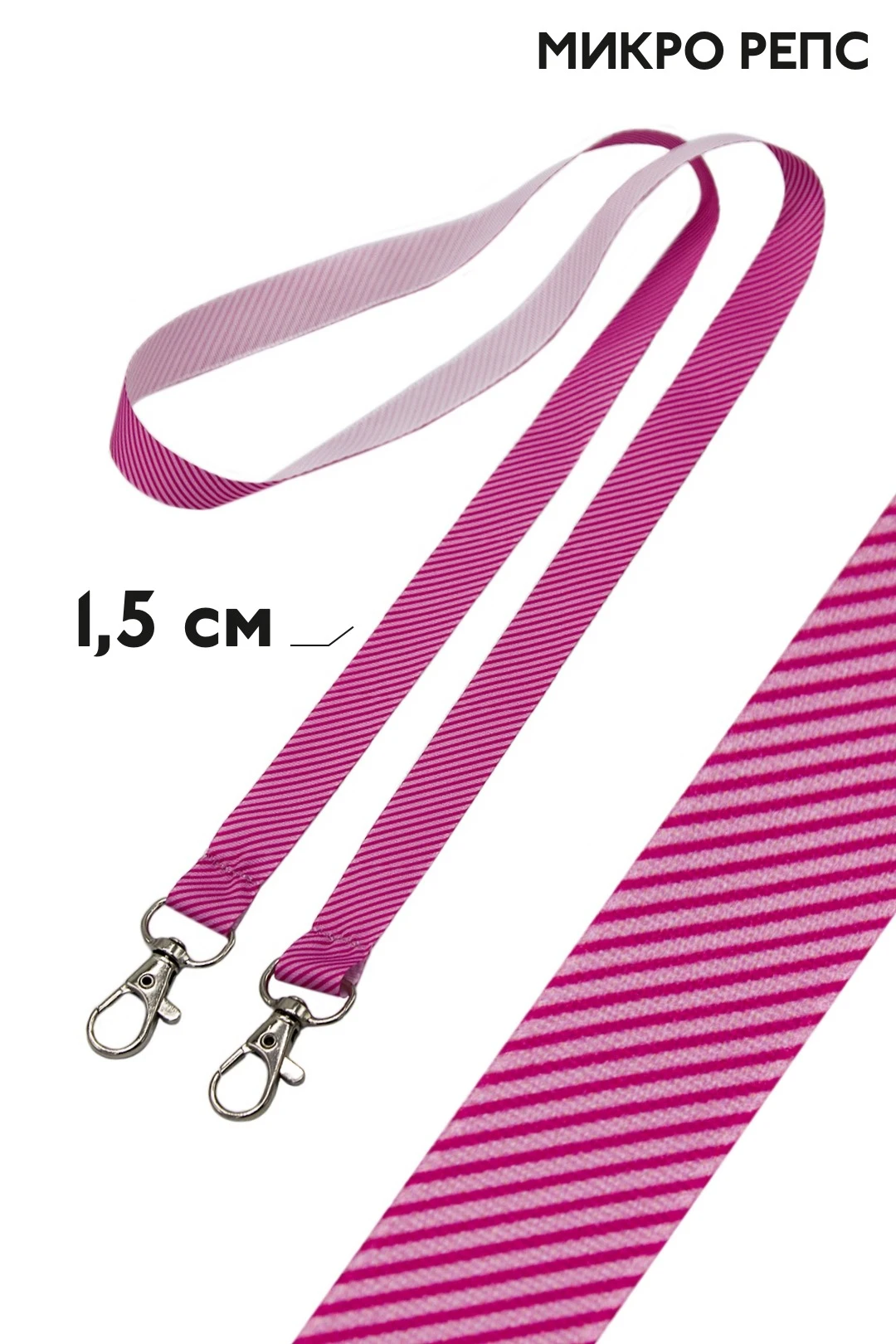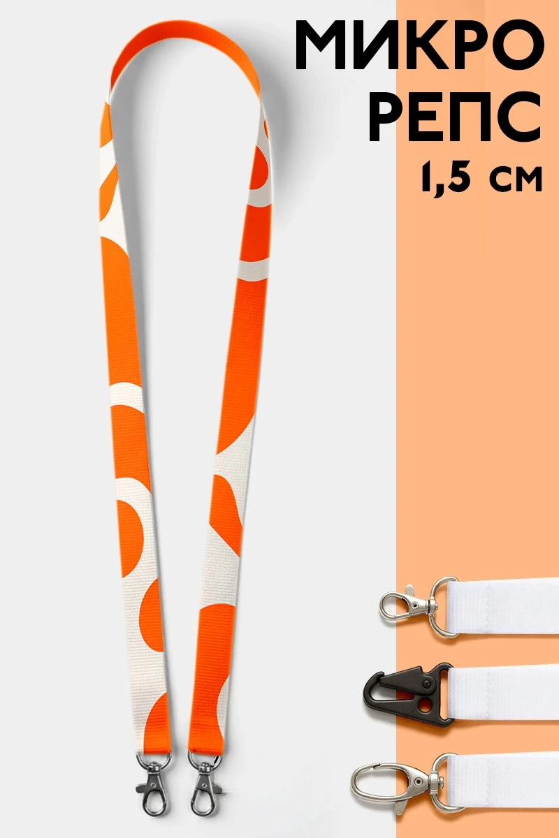 Лента для бейджа микрорепс ширина 1,5 см, с двумя карабинами, с печатью