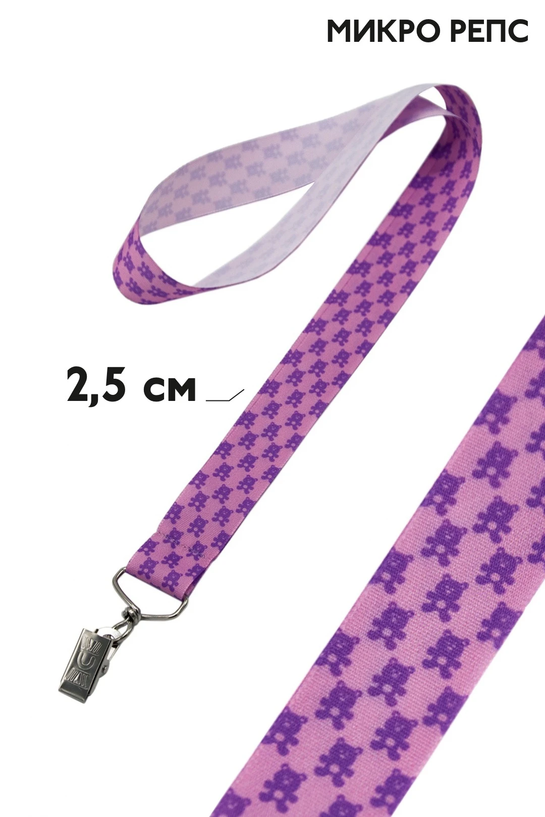 Лента для бейджа микрорепс ширина 2,5 см, с печатью