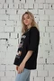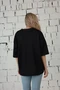 Модель. Футболка оверсайз. Обработка горловины рибана. Низ рукава и изделия подгибается внутрь. Форма ворота О-образная