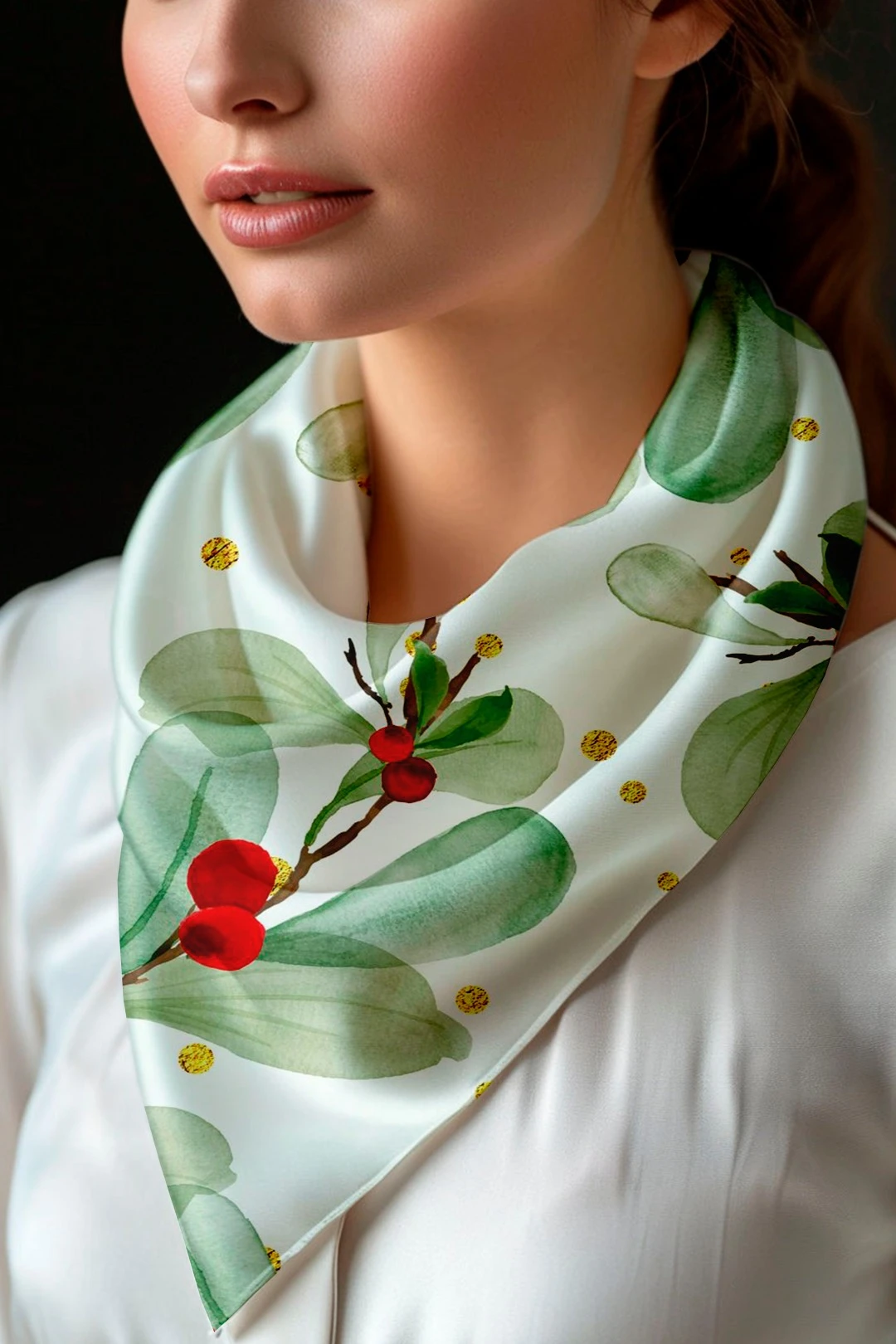 У вас есть возможно приобрести красивейший аксессуар, украшенный по вашему эскизу. Вы можете надеть его как на прогулку с друзьями, так и на работу, чтобы разбавить стандартный деловой костюм. Косынка имеет фигуру треугольника, что позволяет легко и быстро завязать бантик на шею и создать непринужденный образ.