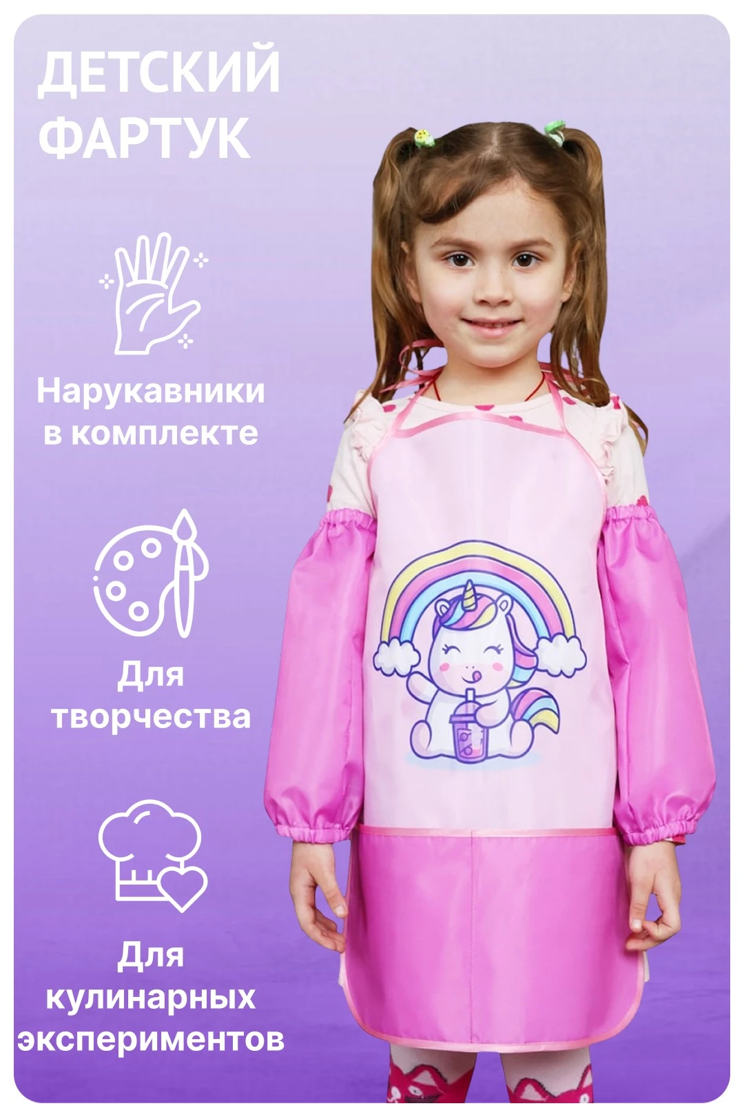 Детский фартук Дори с нарукавниками в комплекте выполнен из влагозащитной ткани. Этот фартук идеально подходит для использования на занятиях по рисованию, кулинарных мастер-классах, а также в детских садах и школах, обеспечивая защиту одежды во время творческих и кулинарных экспериментов!