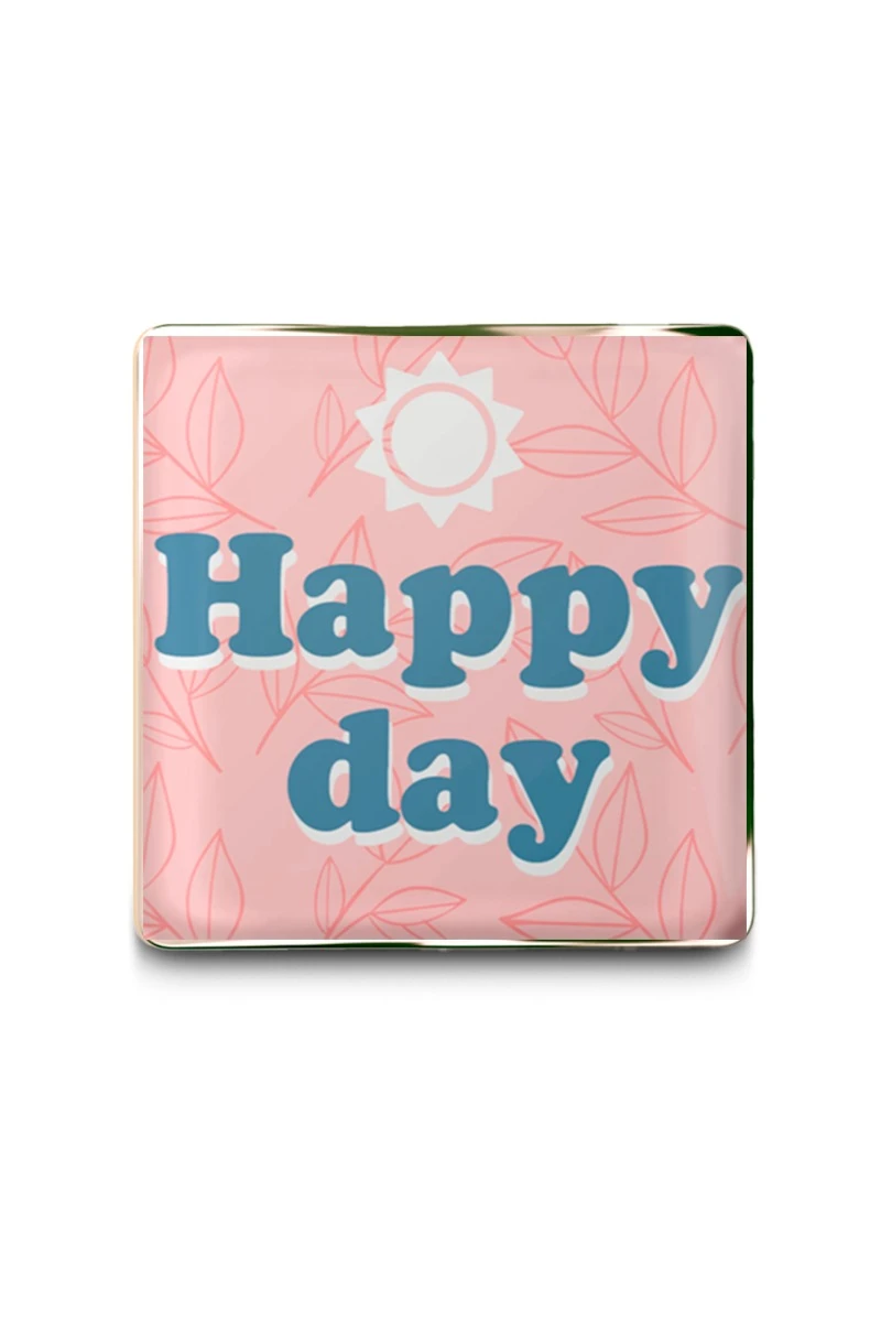 Значок заливной Квадрат 17х17 мм, с принтом "Happy day"