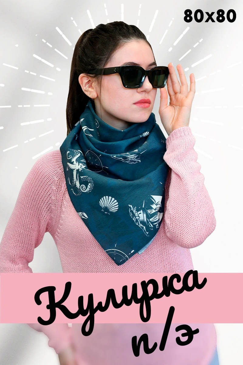 Модель: Бандана квадратной формы. Края платка обработаны оверлоком.