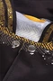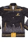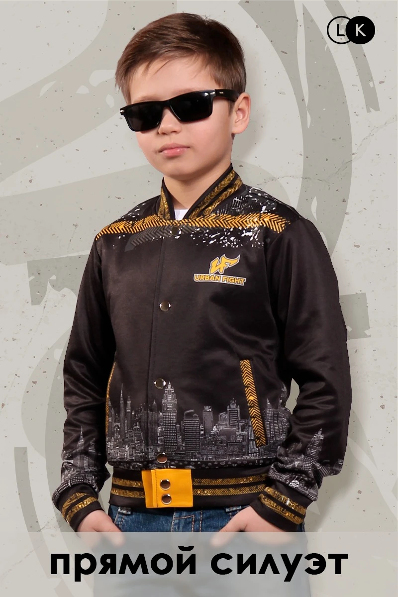 Модель. Прямой силуэт, без капюшона. Длинные рукава с манжетами из сублимационной ткани прима. Низ бомбера и воротник с закругленными углами также выполнены из сублимационной ткани прима. Вариант застежки бомбера на выбор: на шесть металлических кнопок или на молнию. Два боковых кармана в листочку без молнии.