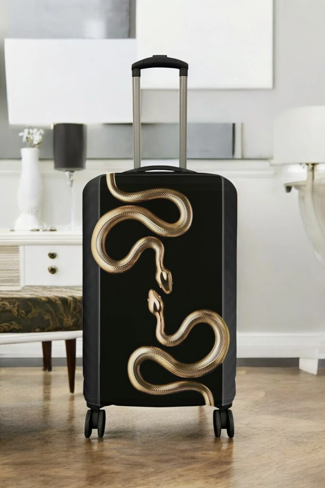 Чехол для чемодана – удобное решение для всех, кто путешествует семьей и в одиночку в любое время года. Он удобен и практичен, надежно защищает ваш багаж от механических повреждений, пыли, грязи и неблагоприятных погодных условий. Нанесенный на чехол яркий рисунок не даст вашему чемодану затеряться среди множества других сумок на конвейерной ленте в аэропорту. Благодаря эластичности ткани чехол легко надевается и надежно фиксируется. Компания "Инари" предлагает чехлы для чемоданов разного размера. Оформляйте заказ изделия с этим оригинальным принтом. Если Вы хотите нанести свой уникальный принт, переходите в базовый товар для создания вашего дизайна.