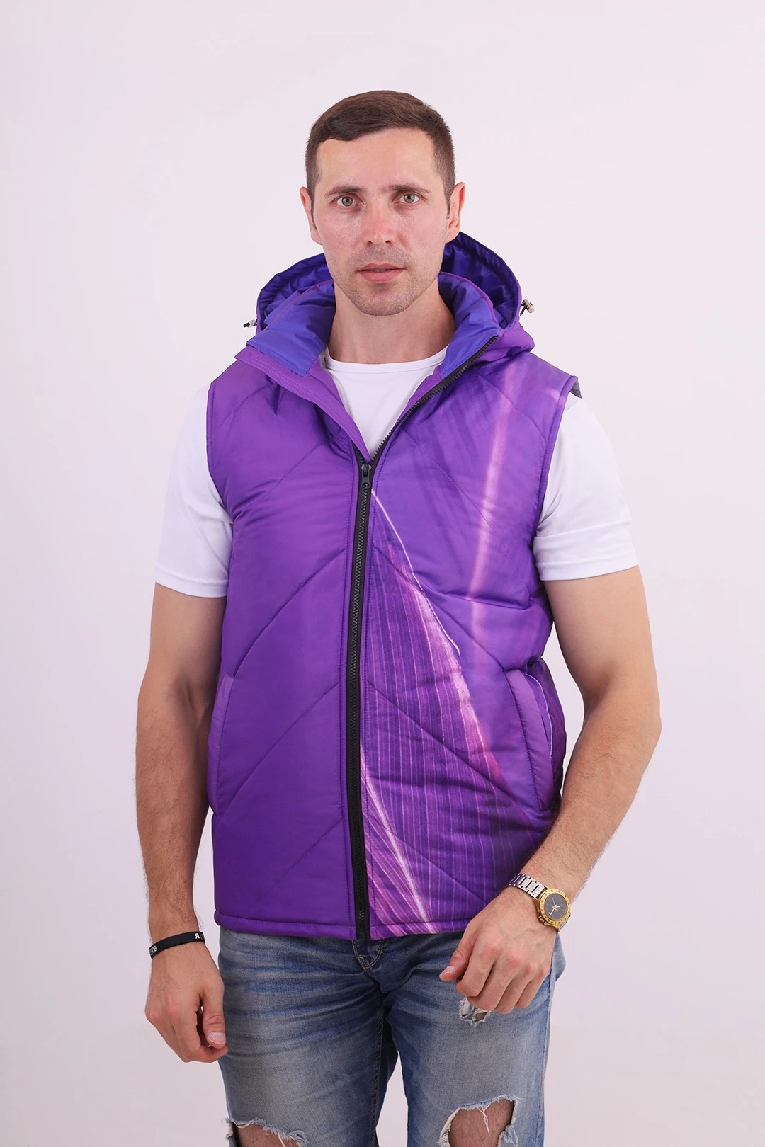 Жилет Стивен на синтепоне с капюшоном является практичным элементом гардероба. Жилет не сковывает движения и удерживает тепло внутри, поэтому он подходит как для занятий спортом, так и для прогулок на улице. Благодаря современным технологиям печати, жилет может быть выполнен в необходимом заказчику стиле. Жилеты производятся с полной запечаткой, изображения наносятся по вашему образцу.