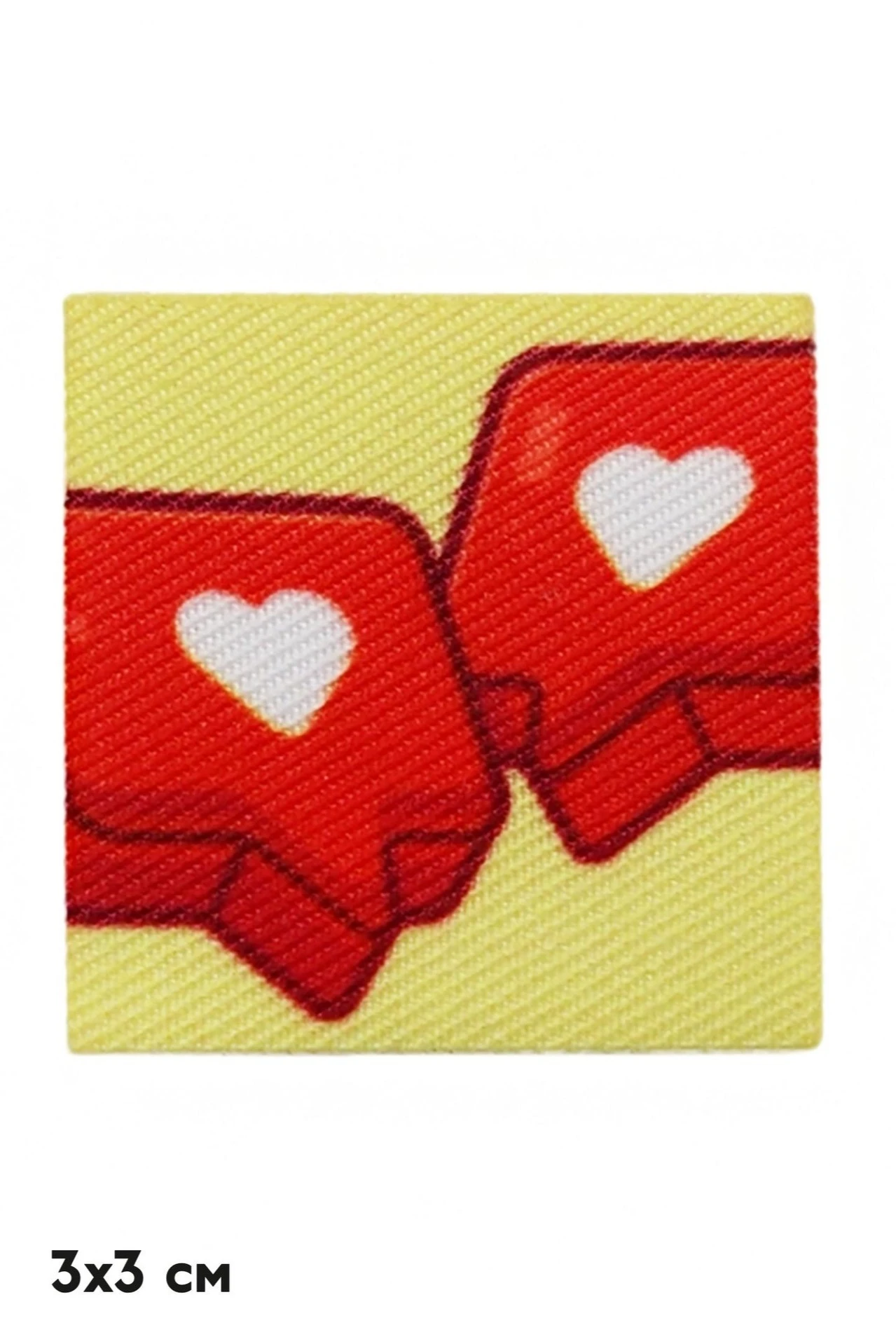 Вид: Наклейка квадратной формы, тканевая основа трехслойная. Край наклейки обрезной. Обрезной край получается с помощью вырезания лазером, края изделия заплавляются и не требуют дальнейшей обработки.