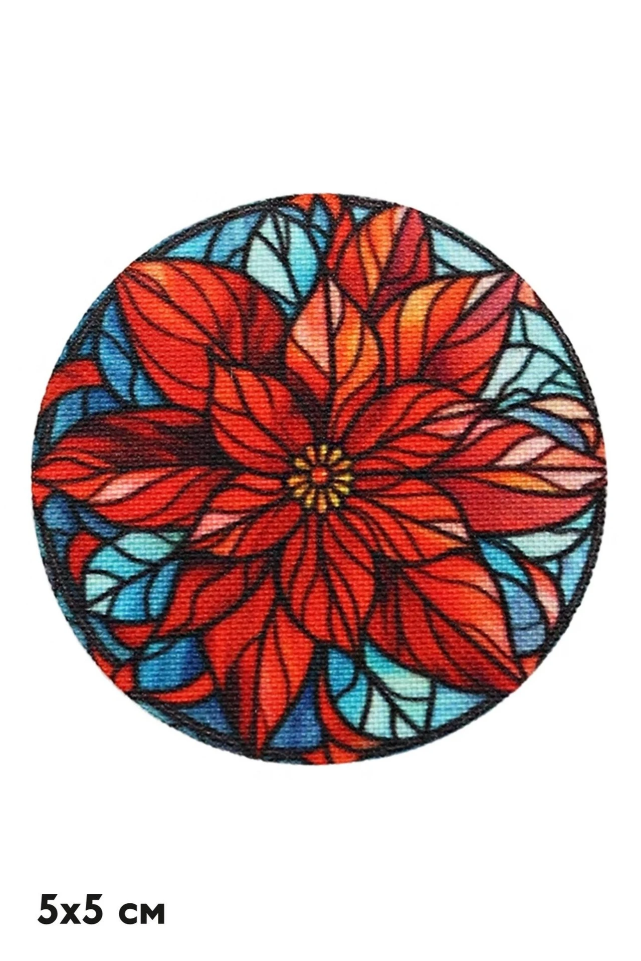 Вид: Наклейка круглой формы, тканевая основа трехслойная. Край наклейки обрезной. Обрезной край получается с помощью вырезания лазером, края изделия заплавляются и не требуют дальнейшей обработки.