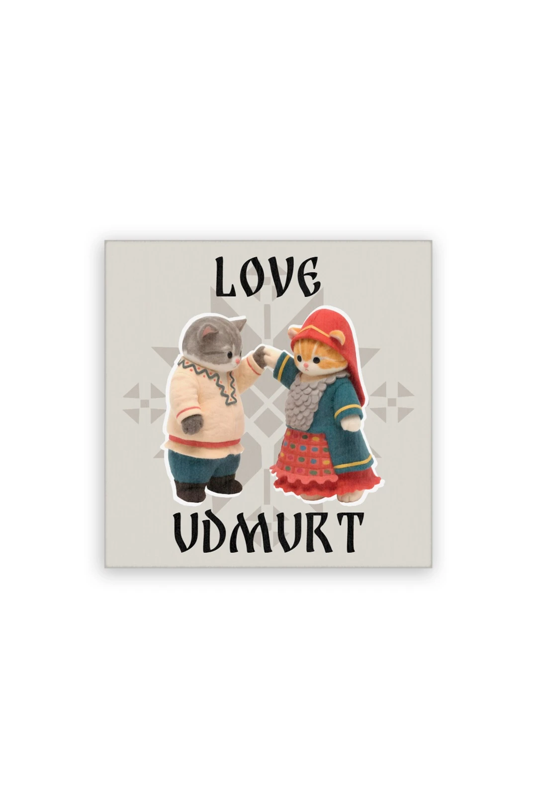 Магнит из дерева 6х6 см квадрат, с принтом "Love Udmurt"