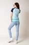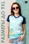 Модель. Приталенный силуэт. Рукав реглан. Футболка имеет боковые швы без разрезов по низу изделия. Оформление горловины руликом (кантом) из основной ткани или рибаной. Форма ворота V-образная.
