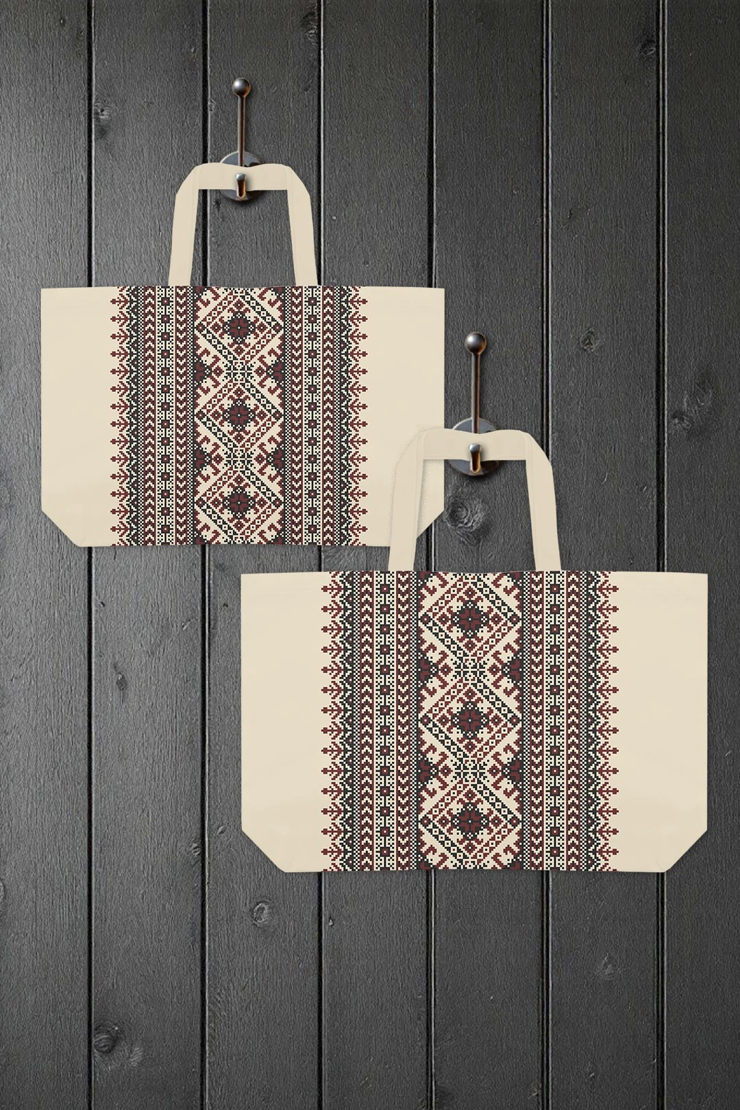 Печать с двух сторон: полноцветная печать осуществляется с двух сторон по всей поверхности сумки, ручки сумки запечатываются фоновой заливкой без элементов дизайна.