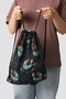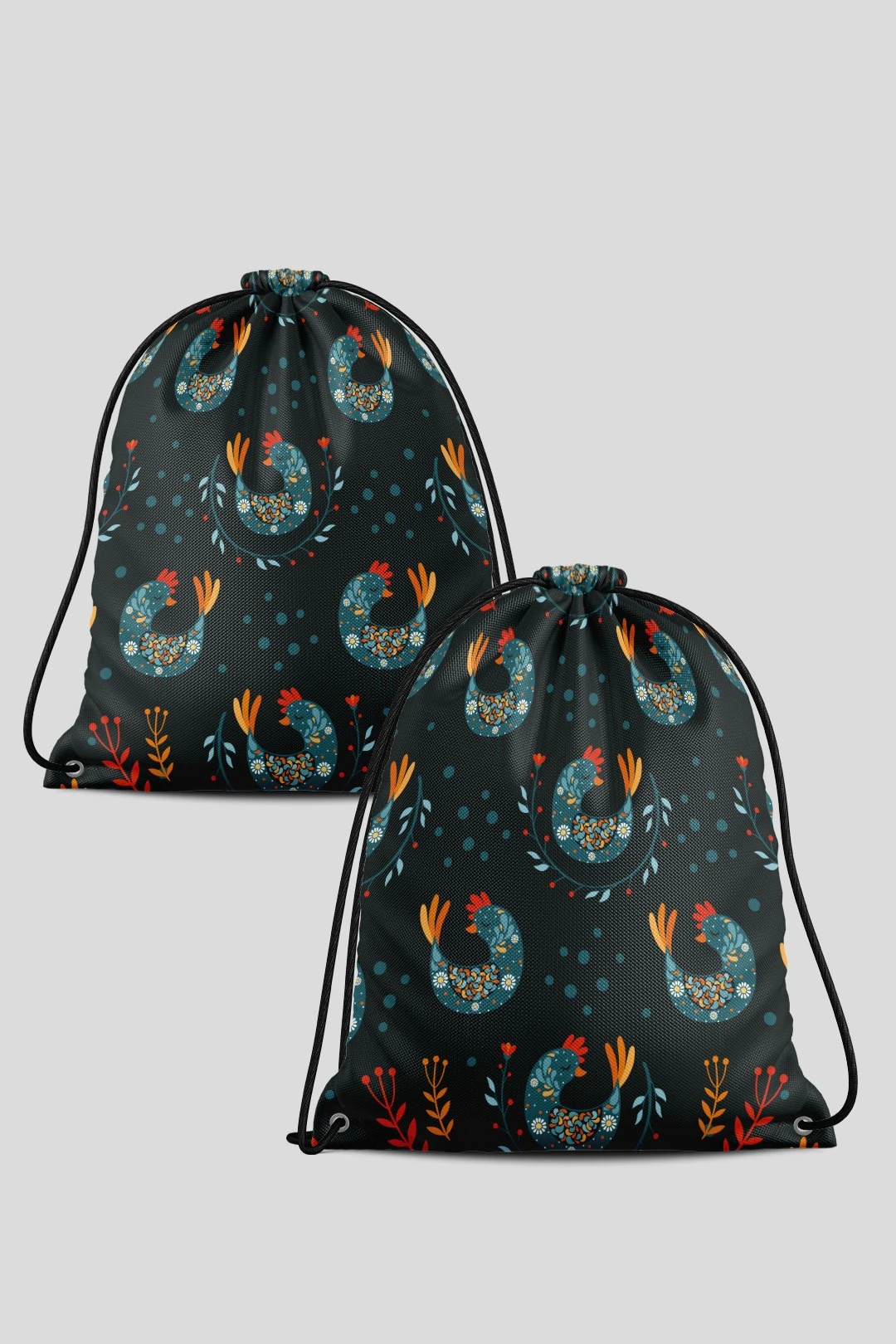 Модель. Рюкзак плоский прямоугольной формы. Верхний край рюкзаков обрабатывается прошивкой. Лямки-завязки выполняются из шнура стандартных цветов, который закрепляется в кулиске по верхнему краю и в люверсах по нижним углам рюкзака.