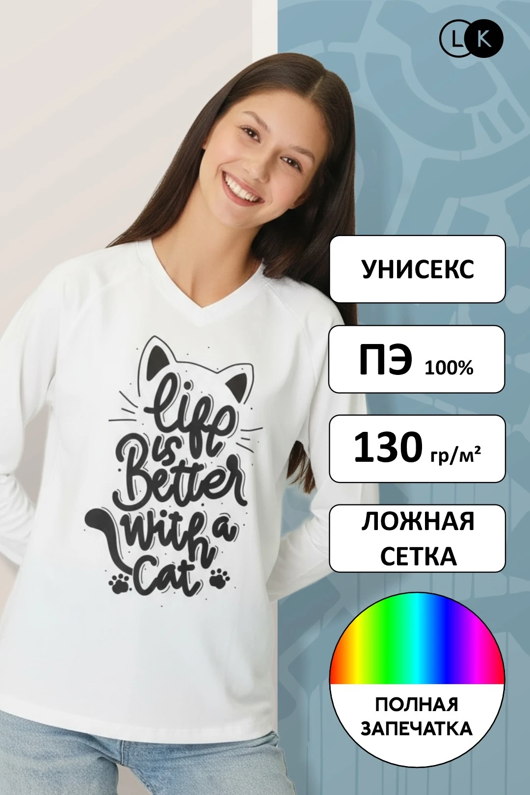 Сублимация. Полноцветная печать осуществляется на всей поверхности лонгслива в процессе производства. Изображение располагается в соответствии с лекалом. Нанесение входит в стоимость футболки. Совмещение изображения на швах осуществляется за дополнительную плату.