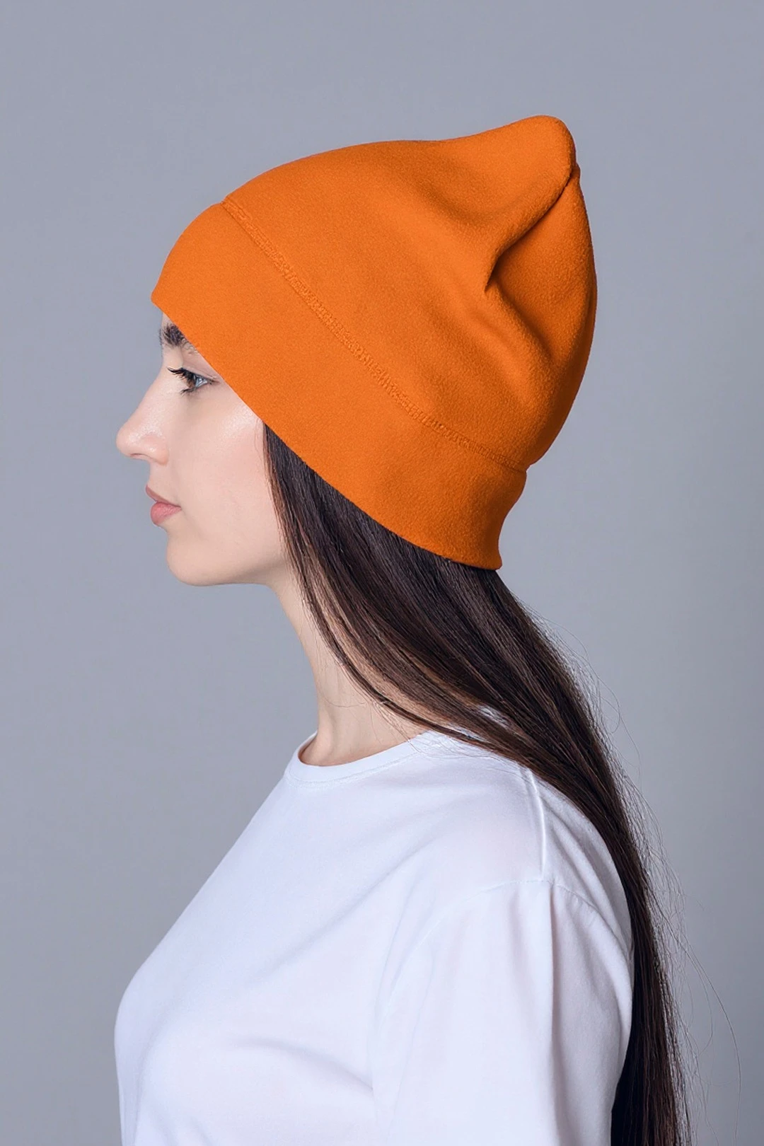 Модель. Однослойная шапка выполняется с отворотом внутрь.