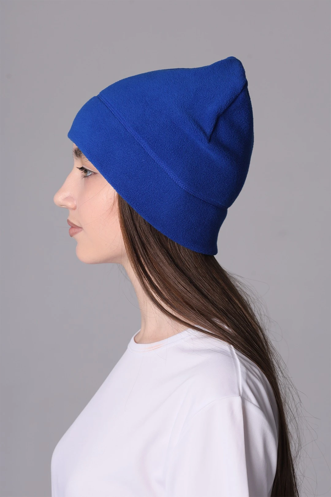 Модель. Однослойная шапка выполняется с отворотом внутрь.
