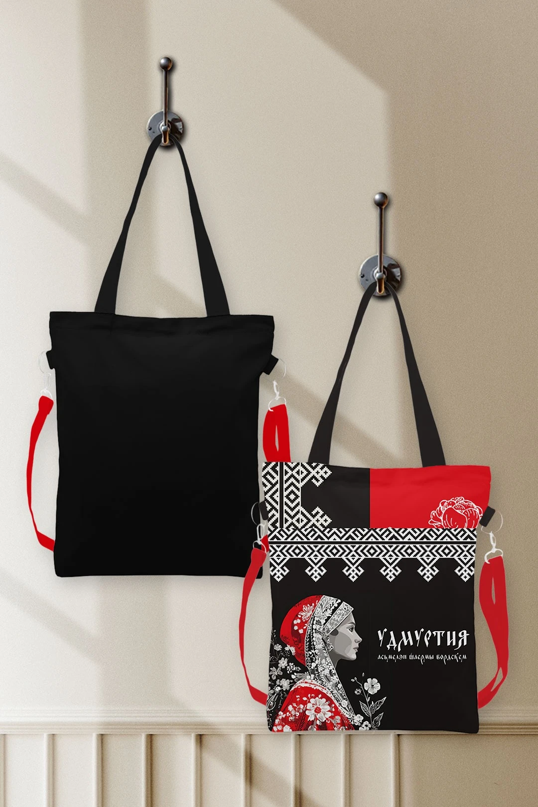 Печать с двух сторон: полноцветная печать осуществляется на хб материале с двух сторон по всей поверхности сумки, ручки сумки запечатываются фоновой заливкой без элементов дизайна.