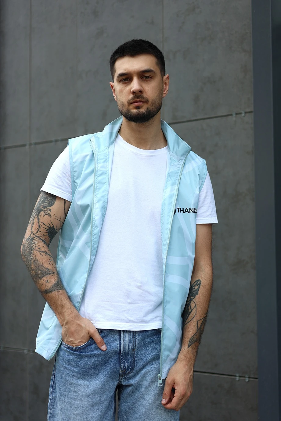 Модель: Жилет Брендон унисекс, с прямым силуэтом, без капюшона. Жилет на молнии, без подклада.  Два прорезных кармана в листочку.